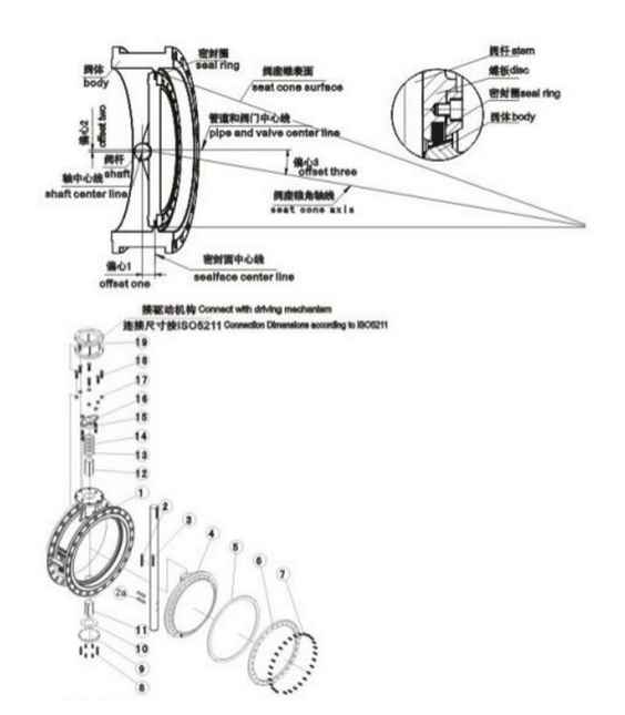 :第一偏心距:密封面平面与阀杆中心线的偏差;