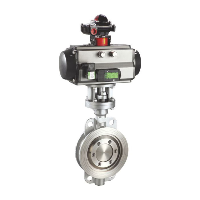 偏心原理设计,主要硬密封蝶阀与气动执行装置连接组成,阀座