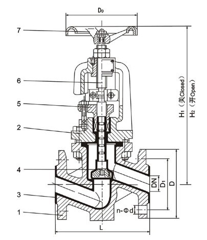 | 公称通径DN | 公称压力MPa | 工作压力MPa | L mm | D mm | D1 mm | n-Φd mm | H1 mm | H2 mm | Do mm | 质量 |