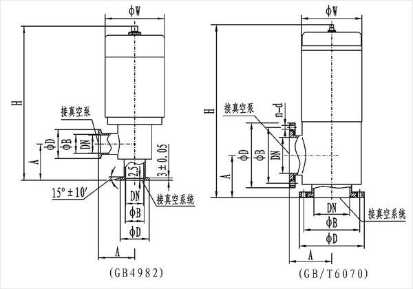 DDC-JQ-B型系列电磁真空带充气阀--连接及外形尺寸(GB/T6070)