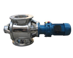 工作时由减速电机通过联轴带动叶轮转动,把壳体上部的物料均匀带到下部,由下一个装置把物料送走。所以,星型卸灰阀只能直立安装,而不允许水平安装,给料机的上部要保持一定的料柱。
