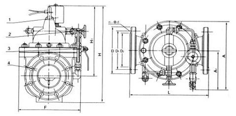 1、电磁向导阀2、针阀3、球阀4、主阀