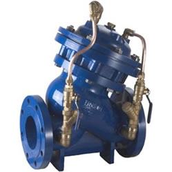 JH745X 型 PN6~PN16 水力自动控制阀的动作性能与水力控制阀相似。它主要是利用管路内的自身压力,通过上下腔控制室的压力差来控制主阀盘的运动,再通过旁通管道和各种不同构造的导阀起不同功能产生各系列阀,从而达到各种要求之目的。该阀分别为消声/消锤/缓开/缓闭止回阀、水位控制阀、减压阀、安全/泄压阀、电动遥控阀等用于各种不同的场合,自动保证管网的安全运行,广泛用于建筑、消防、水厂、暖通、钢铁、电动、石油、化工等系统管网。