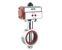 WD671X气动对夹式卫生级蝶阀采用新型系列GT型气动执行器,有双作用式和单作用式(弹簧复位),齿轮传动,安全可靠;大口径阀门采用系列AW型气动执行器拔叉式传动,结构合理,输出扭矩大,有双作用式和单作用式。